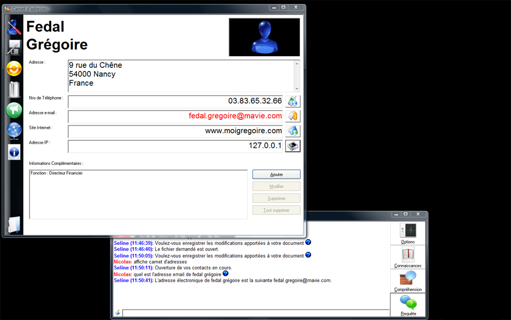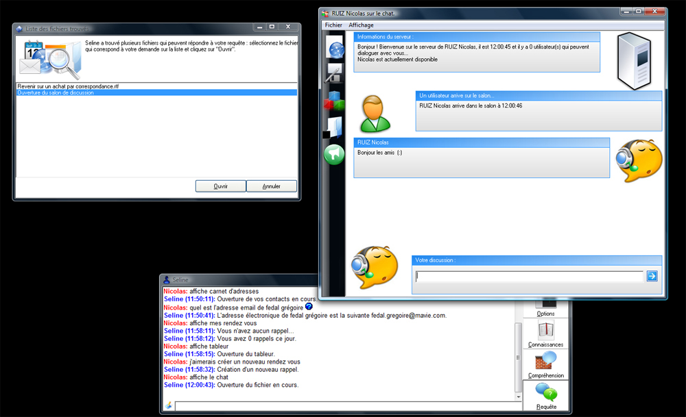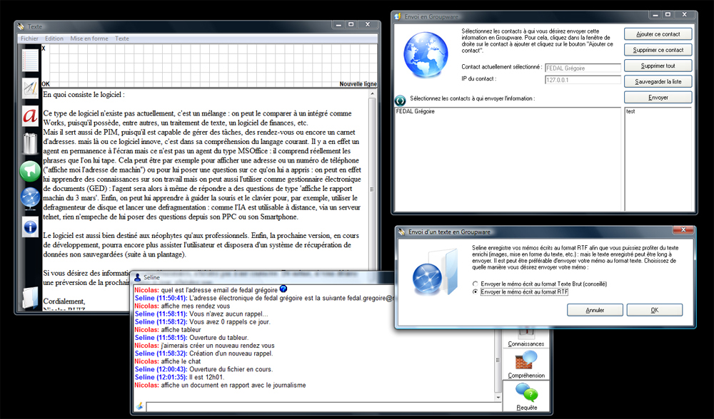 Et comme Seline dispose d'un serveur Telnet, vous pouvez même lui parler à distance, que ce soit depuis un autre ordinateur ou même un téléphone portable. De ce fait, même au bout du monde, vous pourrez demander de l'assistance.